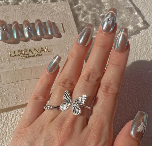 Luxy-Silver-Coffin-30mm-Press On Nail