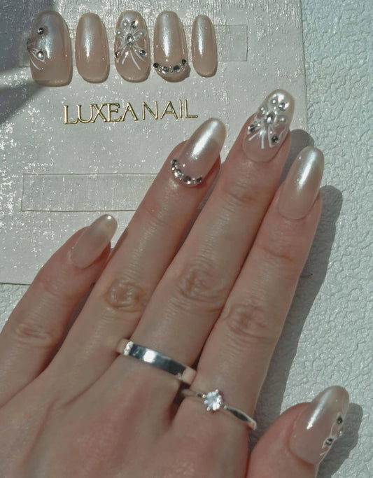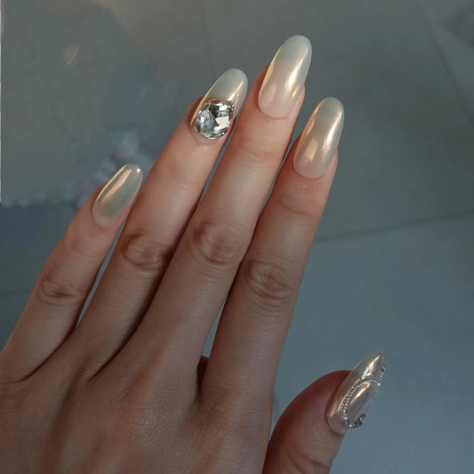 Sold outClassy-White-Oval-30mm-Press On Nail